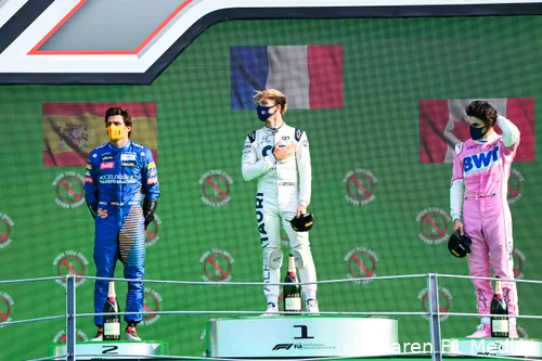 Carlos Sainz op P2 en Lance Stroll op P3. Dit unieke podium was het op twee na jongste podium ooit (met gemiddeld 24 jaar, 1 maand en 24 dagen), alleen tijdens de Braziliaanse race in 2019 en de Italiaanse race in 2008 lag de gemiddelde leeftijd lager. Daarnaast is
