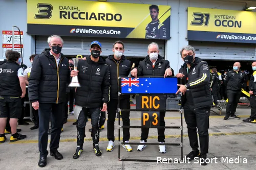 Renault laten zien dat hij het in zich heeft om een groeiend team naar grote hoogten te brengen. De Australiër wist in twee jaar tijd de Franse renstal vooruit te helpen en pakte tijdens de Grand Prix van de Eifel, onder toeziend oog van kersverse Renault-CEO en Formule 1-fanaat Luca de Meo, het eerste podium voor Renault sinds 2011. Renault-teambaas Cyril Abiteboul was uiteraard zeer verheugd met de podiumplaats, maar moest door deze prestatie in 2020 een tatoeage laten zetten.