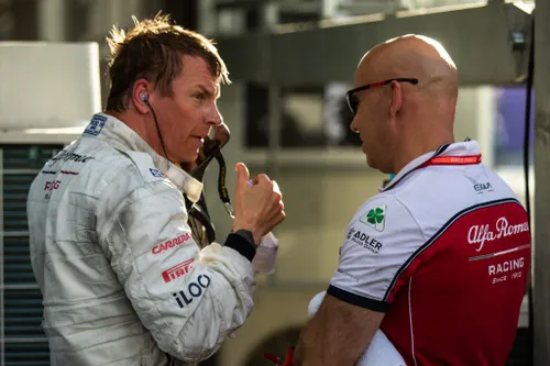 Een kleddernatte Kimi Raikkonen na afloop van de race. De Fin stapte zeer vermoeid uit na een zwaarbevochten P10.