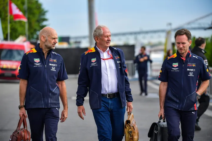 Na de vrije training nemen de topmannen van Red Bull Racing, Christian Horner, Adrian Newey en Helmut Marko, gezamenlijk afscheid van de paddock. Waar zullen de mannen het over gehad hebben?
