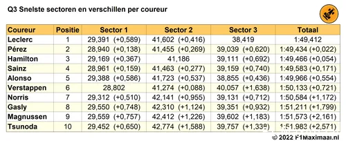 Einduitslag Q3, kwalificatie Grand Prix van Singapore, 2022 (Bron: F1Maximaal.nl)