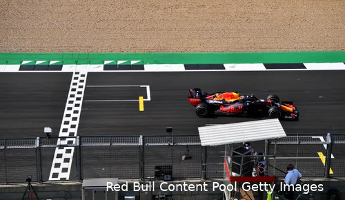 Max Verstappen is de Mercedessen te slim af in de tweede editie op Silverstone. (Foto: Red Bull Content Pool/Getty Images)