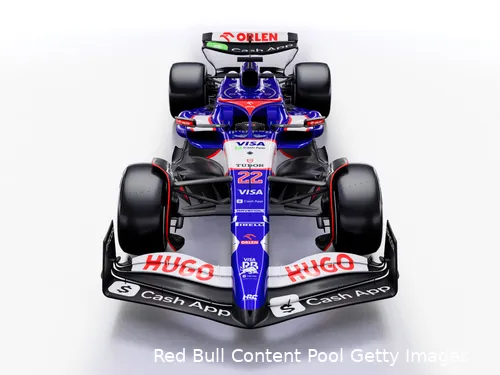 Yuki Tsunoda werd de auto aan de wereld getoond. Wat gelijk opvalt, is de blauwe kleur op de nieuwe bolide, dezelfde kleur die nieuwe sponsor en naamgever van het team Visa in het logo heeft verwerkt. De prominente kleur van de titelsponsor op de bolide zorgt ervoor dat deze erg verschilt van de zwart-witte en donkerblauwe kleuren die vorig seizoen op de