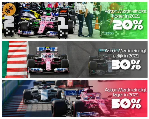make or break-gevoelens met zich meebrengt. Zetten ze de sterke trend van de afgelopen jaren door, dan zou een derde eindklassering niet ondenkbaar zijn. Weet de concurrentie echter tijd te vinden waar Aston Martin dit zelf niet kan, dan zou P5 of zelfs P6 in 2021 ook geen verbazingwekkend eindresultaat zijn. Het F1Maximaal-panel, bestaande uit tien redacteuren en leidinggevenden, heeft haar vonnis uitgesproken over het jaar van het hernoemde team. Hoewel er sterke verdeeldheid bestaat omtrent de kansen van het in Silverstone gesitueerde team, lijkt een afzakking in de klassering het panel het meest waarschijnlijk, met vijf stemmen voor deze optie. Tweemaal werd een hogere eindklassering dan P4 verwacht en drie keer zit een vierde plek er weer in.