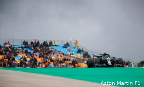 Sebastian Vettel durfde het aan om de gok te wagen met de medium-banden. Het mocht niet baten, want na een ronde keerde de Duitser alweer terug voor de Aston Martin-pitbox voor een nieuw setje intermediates. (Foto: Aston Martin F1) 'Graining' gooit roet in het eten