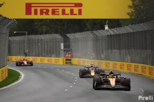 Max Verstappen. De Nederlander passeerde Piastri direct bij de start, maar de Australiër veroverde de plek al relatief vroeg terug. Hierdoor ontstond er een tweestrijd tussen de teamgenoten van McLaren. Piastri kwam snel dichterbij, maar kreeg een duidelijke boodschap vanuit zijn team: positie behouden.