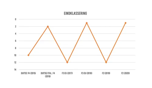 Daarnaast werd hij werd tweede in het eindklassement tijdens zijn tweede seizoen in de Formule 4 en hij wist zichzelf zelfs kampioen te kronen in zijn tweede seizoen in Formule 3. Geen misselijke prestatie dus, gezien het deelnemersveld in deze klasse behoorlijk competitief is. Dat is ook te zien in andere statistieken van de Duitser. In 2018 reden Dan Ticktum, Robert Shwarzman en Marcus Armstrong ook dat jaar in de Formule 3.