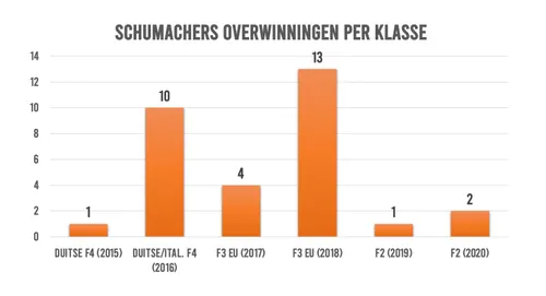 Een ander opvallende statistiek is dat de Duitse Formule 2-coureur nog geen enkele keer een poleposition heeft weten te behalen, terwijl hij dit wel deed in de Formule 4 en Formule 3. Vaak wist Schumacher bijvoorbeeld met fraaie inhaalacties races alsnog naar zijn hand te zetten. Zo kunnen we ons de 'klassieke' move op Yuki Tsunoda bij de race van Sochi nog herinneren, waar hij de overwinning uiteindelijk mee pakte.