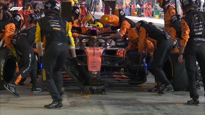Na 26 ronden maakte Sainz een pitstop. McLaren reageerde uiteraard met een pitstop bij Norris, één ronde later. Er stond heel veel druk op de pitstop bij Norris, maar McLaren leverde met 2,0 seconden een geweldige pitstop af. Ook Russell stopte, waardoor Verstappen en Hamilton de enige coureurs waren, die nog geen pitstop gemaakt hadden. Norris en Sainz reden ondanks hun pitstops nog voor de Nederlander.