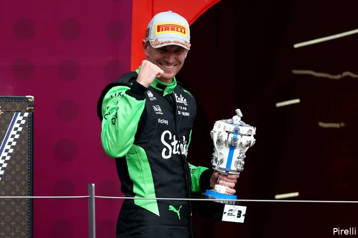 Nico Hülkenberg staat voor het eerst in de Formule 1 op het podium. De Duitse coureur wist dat hij op het podium kon eindigen toen hij weg kon rijden van Lewis Hamilton, maar geeft toe dat het zonder de regen een ander resultaat was geweest. Over de trofee, die deze keer van LEGO is gemaakt, klaagt Hülkenberg ook niet. Nico Hülkenberg rijdt als sinds 2010 in de Formule 1, maar scoorde in 2025 pas zijn eerste podium. De Duitse coureur kwalificeerde zich als negentiende voor de Grand Prix van Groot-Brittannië en daarmee leek zijn race al over voordat deze was begonnen. Echter, Hülkenberg wist goed gebruik te maken van de lastige omstandigheden en kwam als derde over de finishlijn.