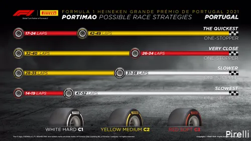 Volgens Pirelli doen de Formule 1-teams er bij de Grand Prix van Portugal goed aan om te kiezen voor een bandenstrategie met één pitstop. Traditiegetrouw deelt de bandenleverancier van de sport vlak voor de race hun voorspelling, op basis van de vergaarde data in de trainingen. Daarbij komt één strategie duidelijk naar voren. Volgens de informatie van