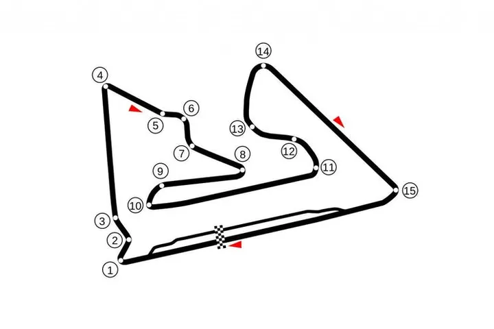 Bahrain International Circuit kent lange rechte stukken maar ook bochtige delen.