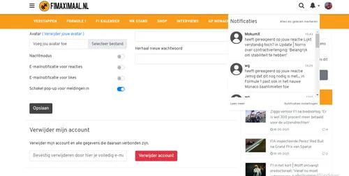 Mocht je nog geen account hebben, dan kun je je rechtsboven op de site ook registreren. Als je vervolgens reageert of likes krijgt, dan krijg je daar van live een melding te zien. Bij instellingen voor notificaties is het vanaf nu tevens mogelijk om emailnotificaties aan of uit te zetten (zie onderstaande foto).