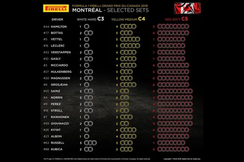Mercedes gaat voor volle bak in Canada. Het Duits-Britse team kiest voor de meest aanvallende strategie. Wel valt op dat Hamilton en teamgenoot Valtteri Bottas een andere bandenkeuze hebben gemaakt. Wel hebben beide coureurs acht setjes van de harde banden mee.
