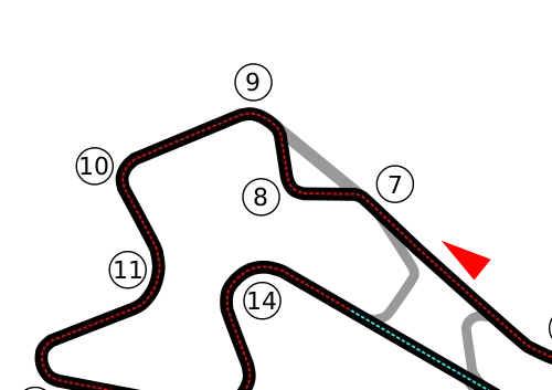 Dat is echter de MotoGP-variant en niet de FIA-variant, die een klein, maar belangrijk verschil met zich meebrengt. Die flauwe laatste bocht bestaat namelijk niet in de FIA-variant. Die is daarin vervangen door een zeer nauwe haarspeldbocht waar dus met gemak ingehaald kan worden. En mocht je dan zijn gepasseerd als coureur zijnde, dan kan je door het verlengde opkomen start/finish zo je verloren positie weer terugpakken. Ideaal voor het racen dus. (Foto: Red Bull Content Pool/Getty Images)