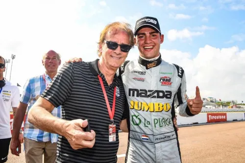 Luyendyk gaat op de foto met VeeKay na diens Indy Lights-zege in de straten van St. Petersburg. Het is de eerste van zes overwinningen dat jaar op weg naar de tweede plaats in het kampioenschap direct onder de IndyCar. (Foto: Rinus VeeKay PR) Daarbij komt dat Luyendyk tot de conclusie is gekomen dat hij zich prestatietechnisch geen zorgen hoeft te maken over de ontwikkelingen van VeeKay. 'Ik hoef hem qua rijden niets bij te brengen, dat doet hij heel goed. Natuurlijk is Rinus wel jong en is hij nog steeds ervaring aan het opdoen, maar met de jaren zal hij alleen maar beter worden.' Het is duidelijk dat de geboren Zeeuw een hoge pet op heeft van zijn landgenoot, maar de spreekwoordelijke oranje bril ontbreekt. 'Ik ben wel chauvinistisch, maar ik ben ook een realist – en het is realistisch om te zien hoeveel potentie Rinus heeft, dat is niet normaal.'