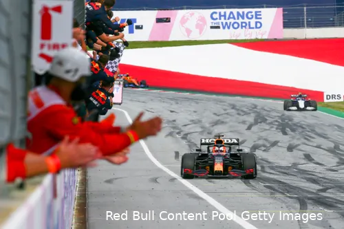 Verstappen zou in het tweede deel van de eerste seizoenshelft van 2021 drie races winnen, waaronder twee zeges tijdens het Oostenrijkse tweeluik. Door uitvalbeurten en een negende plaats in Hongarije staat de Nederlander echter op een tweede plek in het kampioenschap achter Hamilton (Foto: Red Bull Content Pool/Getty Images).